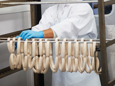 腸詰め:天然羊腸に充填し、一本づつ手捻りしていますので、太さや長さにバラツキがある場合があります。
