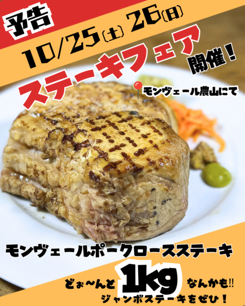モンヴェール農山で、モンヴェールポークのステーキフェアを開催します😍🤙✨